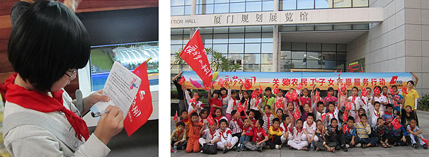2011年10月,廈門國貿(mào)集團(tuán)“愛與夢飛翔”志愿者帶領(lǐng)廈門市文安小學(xué)學(xué)生參觀廈門規(guī)劃展覽館。在規(guī)劃展講解員的帶領(lǐng)下,學(xué)生們親身感受了廈門的發(fā)展,體驗有趣的環(huán)形影院和各式各樣的最新科技,實實在在的了解了每天生活的城市,通過感受特區(qū)發(fā)展,也加深了他們對生活的熱愛,激勵學(xué)生懷抱建設(shè)家園的夢想,積極向上。